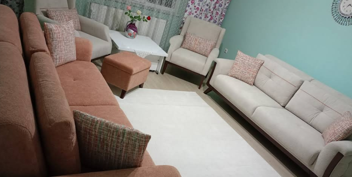 Bir oturma odası takımı, bulunduğu alanla tam bir uyum içinde olmalıdır. Bursa Yıldırım’da ev dekorasyonu yapılırken, koltuk takımının kumaşı, perdeler, halılar ve aksesuarlarla renk uyumu içinde olmalıdır.